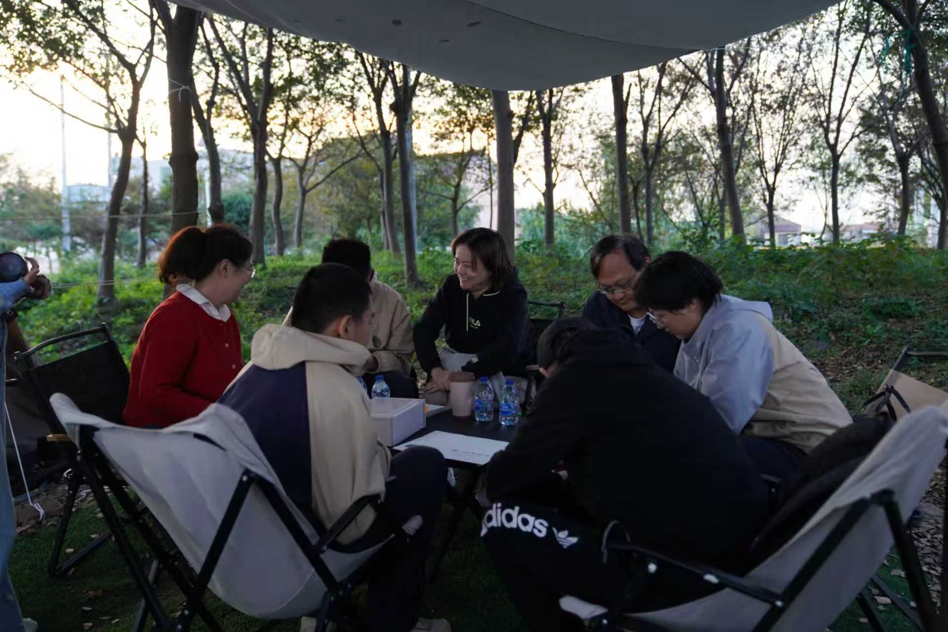 “粮食安全是第一安全”,朱墩村第三任驻村第一书记陈前的话语掷地有声。他俯身下田示范收割,同学们手持镰刀紧随其后,“咔嚓”声中体验耕耘的艰辛,泥土芬芳里感悟“粒粒皆辛苦”的深刻内涵。回到稻露咖啡馆,区政协委员、教育工作者等各界代表围坐畅谈,围绕“田间家庭教育思政课堂”“新时代家庭代际沟通”等主题各抒己见,思想碰撞间凝聚育人共识。与此同时,太阳成集团tyc9728“乡村直播官”项目全程记录,师生扎根田间搭建直播间,以专业镜头展现乡村美景与烟火气,指导村民推介特色好物,让直播兼具温度与实效,既带动旅游预约和农产品销售,更坚定了村民文化兴村的信心。同学们将割稻感悟写成文字灯饰,“庄稼在生长,我也在生长”道出了所有参与者的成长心声。