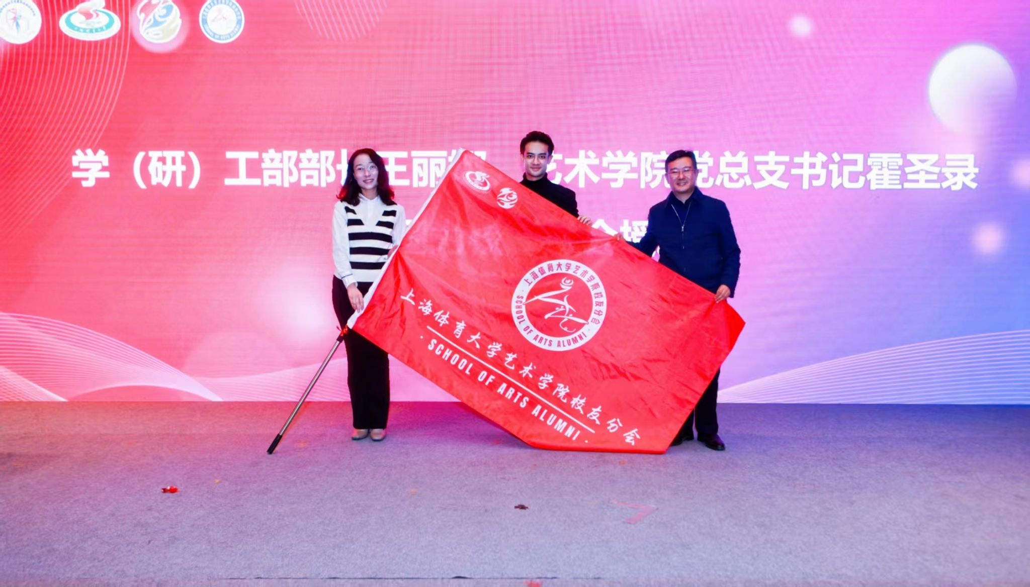 现场还举行了授旗仪式,王丽娜部长与霍圣录书记共同向校友分会授旗,高敏副书记、林毅副院长为理事会成员代表颁发聘书,标志着校友组织正式进入体系化运行阶段。