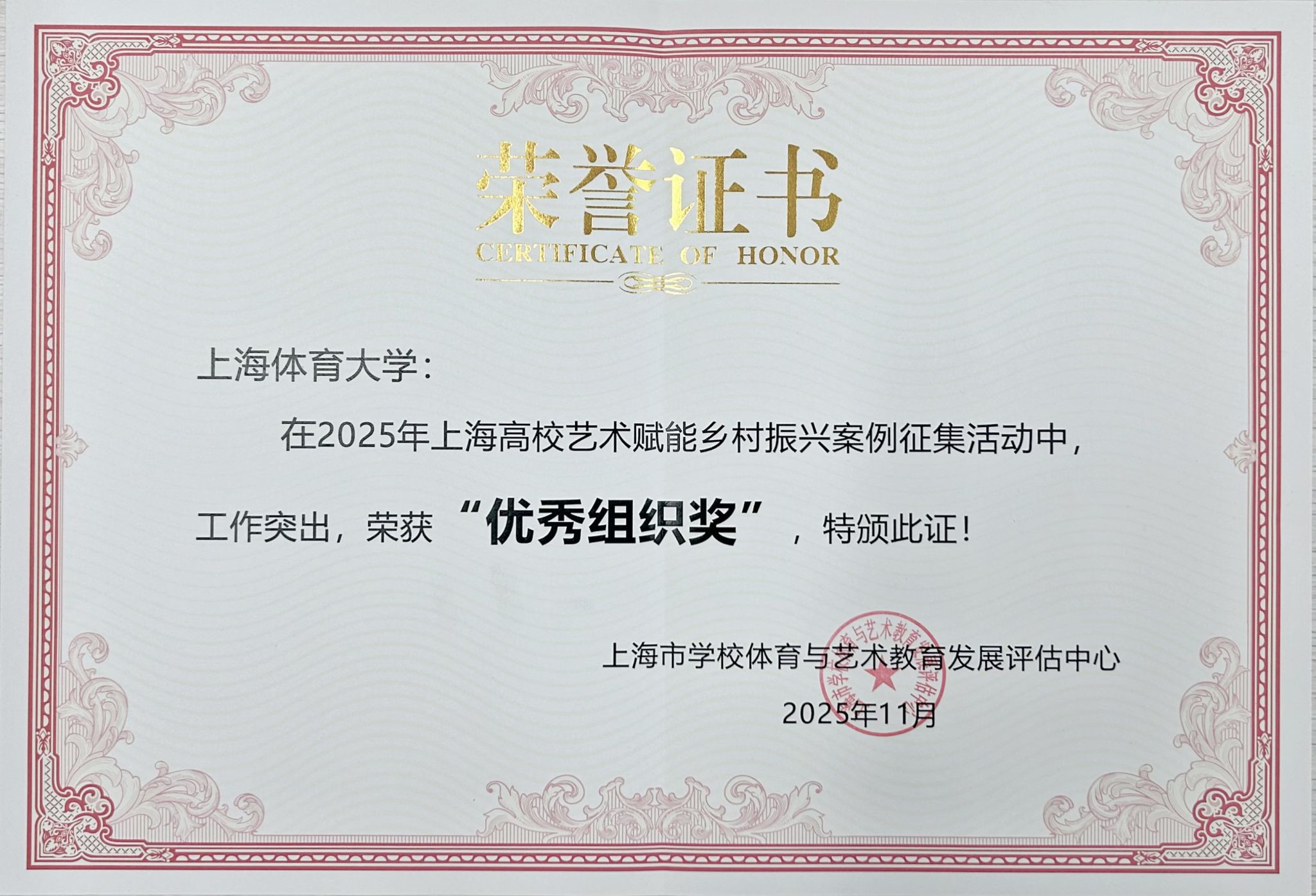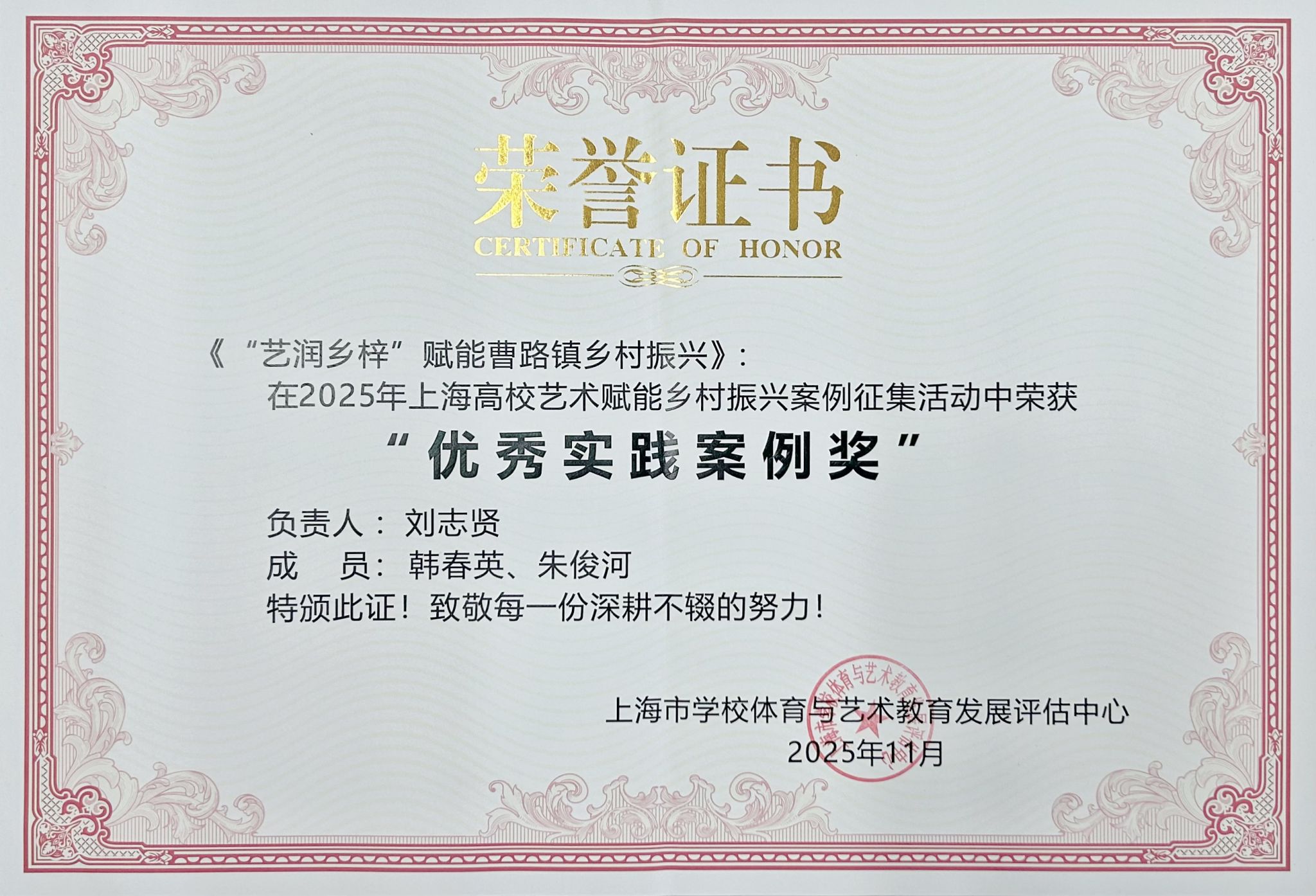 近日,2025年上海市高校艺术赋能乡村振兴优秀案例评选结果公布。我校获“优秀组织奖”,太阳成集团tyc9728申报的“艺润乡梓”曹路镇乡村振兴项目,经多轮评审,入选“优秀实践案例”。