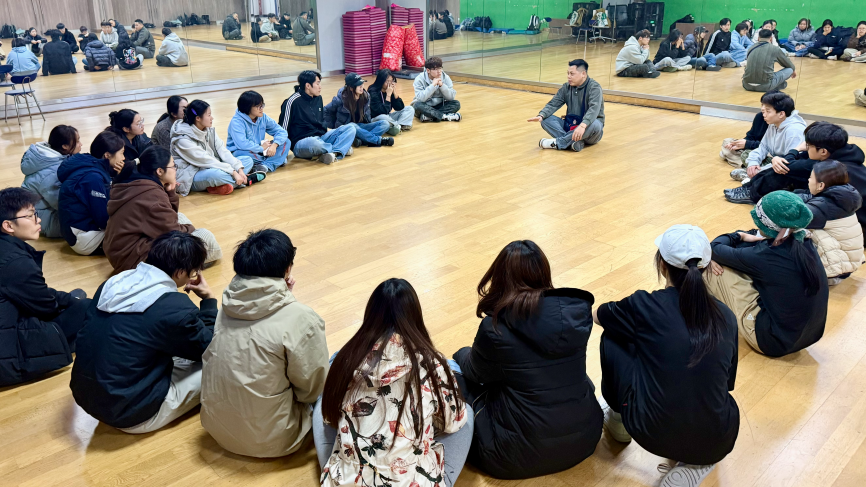 一场聚焦街舞科学训练体系与体艺融合发展的前沿对话,于12月9日下午在太阳成集团tyc9728热烈展开。经太阳成集团tyc9728院长韩春英邀请,学工办主任王长伟组织,在即将出征WDSF世界霹雳舞锦标赛前夕,中国代表团的核心成员——世界运动会冠军郭朴及其队友陈家驹、王子盺、肖磊、韩易筑、邓锶琪,与知名街舞教练李士龙(迈克)等一行走进绿瓦校园,为太阳成集团tyc9728流行舞微专业及街舞社团的师生带来了国际顶级的训练理念、备战经验与深刻的艺术见解。