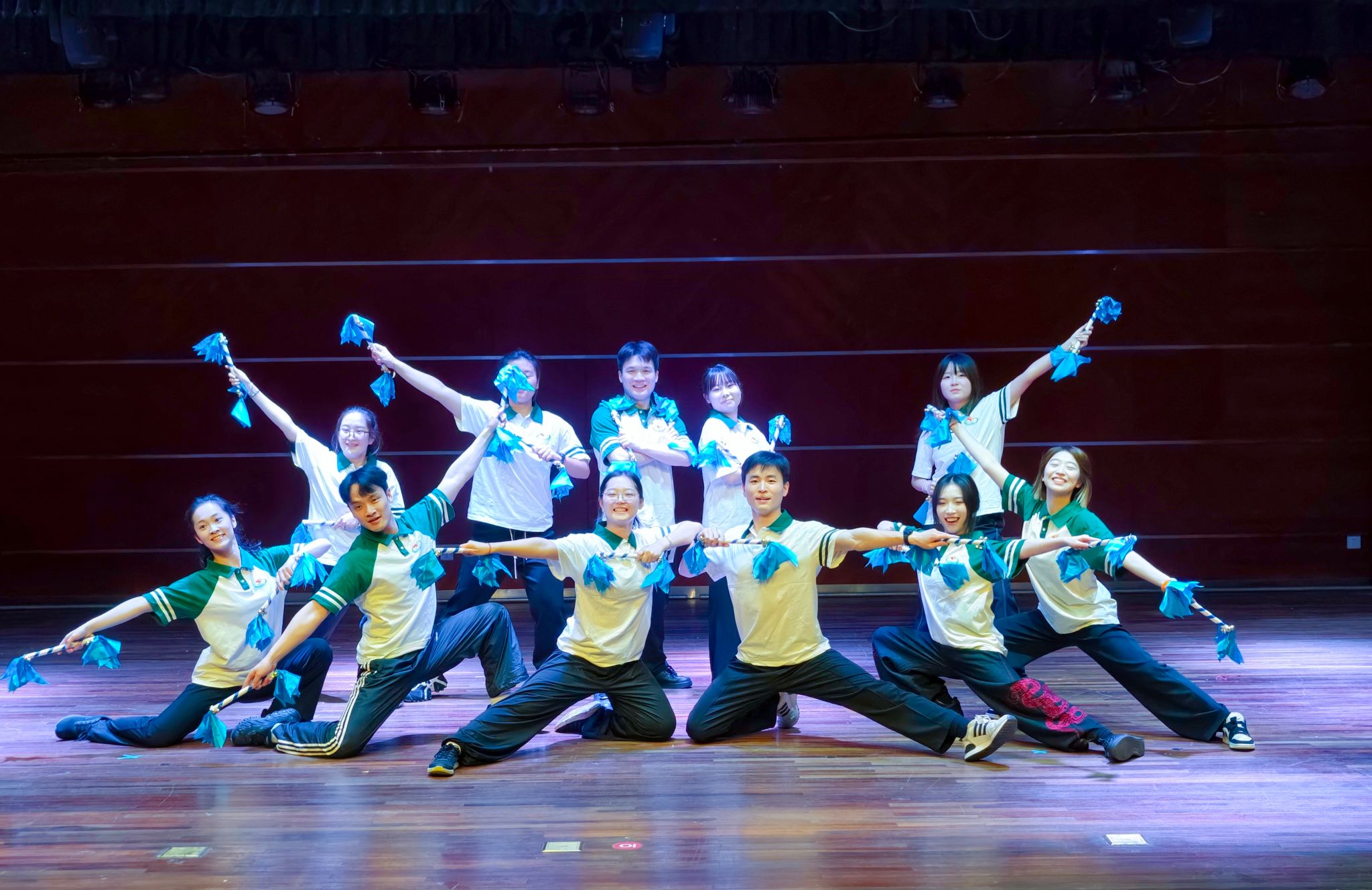 汇演现场,28名非舞蹈专业学员历经一学期96课时系统化训练,实现从“零基础小白”到“舞台实力派”的华丽蜕变。Locking作品《Funky for life》俏皮利落、卡点精准,瞬间点燃现场氛围;Hiphop《这就是hiphop》巧妙融合体育生体能优势与街头舞蹈的自由张力,刚劲律动尽显青春活力;Jazz《Like Jennie》刚柔并济,舞者自信舒展的姿态赢得全场喝彩。