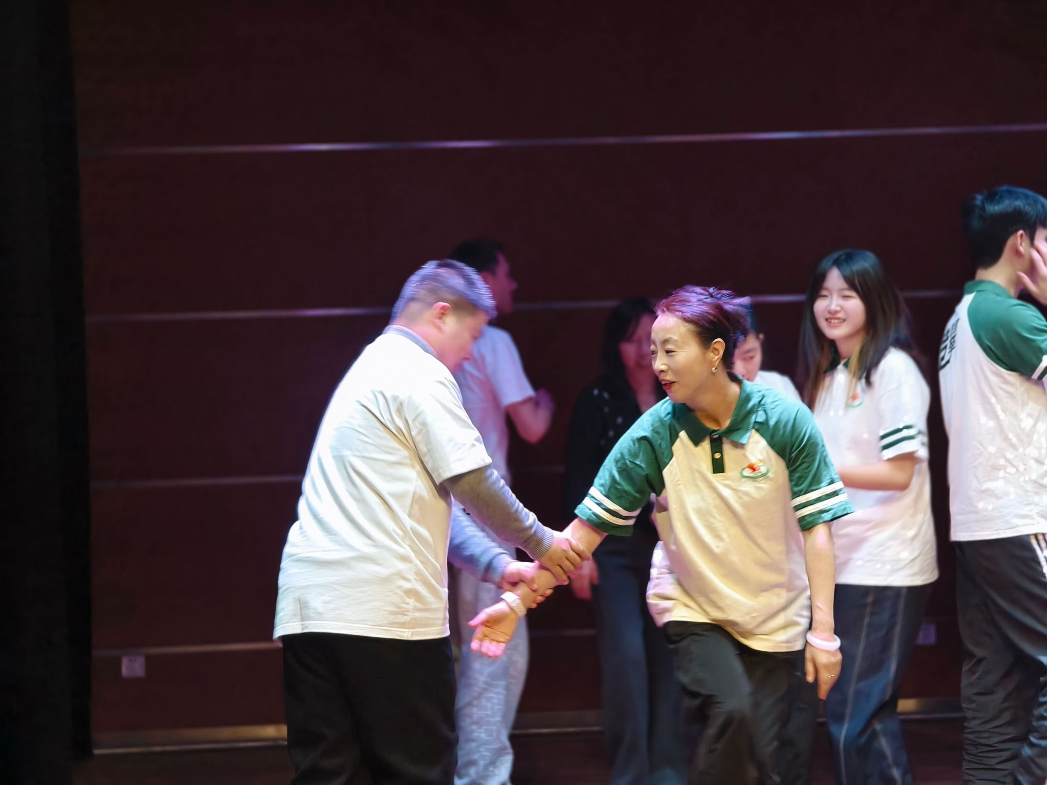与流行舞的热烈奔放形成鲜明呼应,首届18名舞蹈治疗微专业学子交出了亮眼的实践答卷。作为国内高校率先开设的相关微专业,该方向课程实践占比高达60%,学子们深入医院、特教机构开展实战历练:与市第四人民医院深度协作,为肝胆胰术后患者定制身心一体化康复方案;《舞动帕金森MindMover PD》环节,回溯五年陪伴患者的疗愈历程,用温柔律动传递“身心合一”的康复理念;节目《与星共舞》携手上海彩虹雨公益服务中心32名自闭症儿童温情登台,以即兴互动演绎爱与陪伴的温暖;非遗融合节目《Welcome to Shanghai》创新嫁接上海非遗“打莲湘”技法与流行音乐,打造“非遗+疗愈”的鲜活范例,获业内代表高度认可。