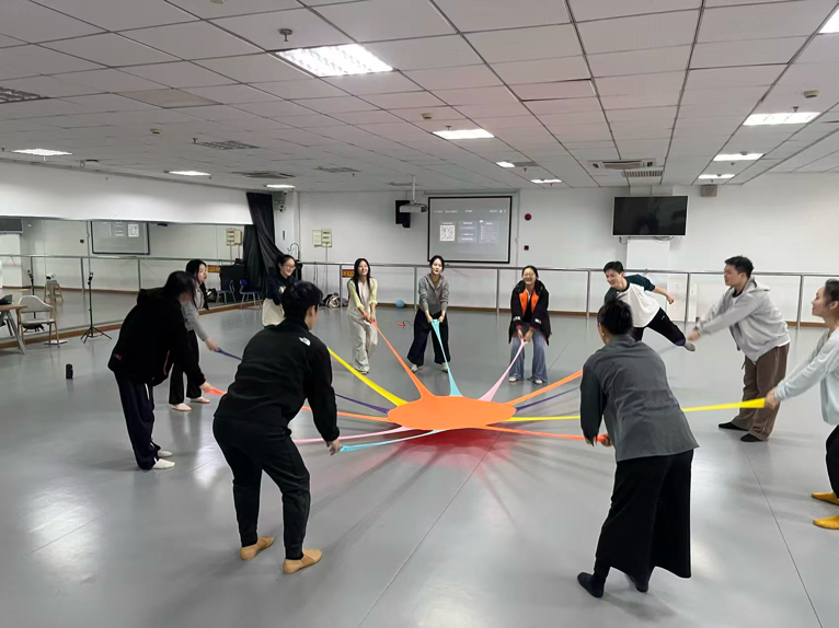舞蹈治疗微专业团队深度扎根行业核心项目与高端研讨,持续提升学科影响力与引领力:与上海市第四人民医院肝胆胰外科深度合作,聚焦“运动+医疗”融合,将术后加速康复需求与舞蹈治疗技术结合,学子们配合医师为患者设计头颈部放松、呼吸调节等针对性训练,既助力肢体功能恢复,又缓解焦虑疼痛,实现生理与心理的双重康复。